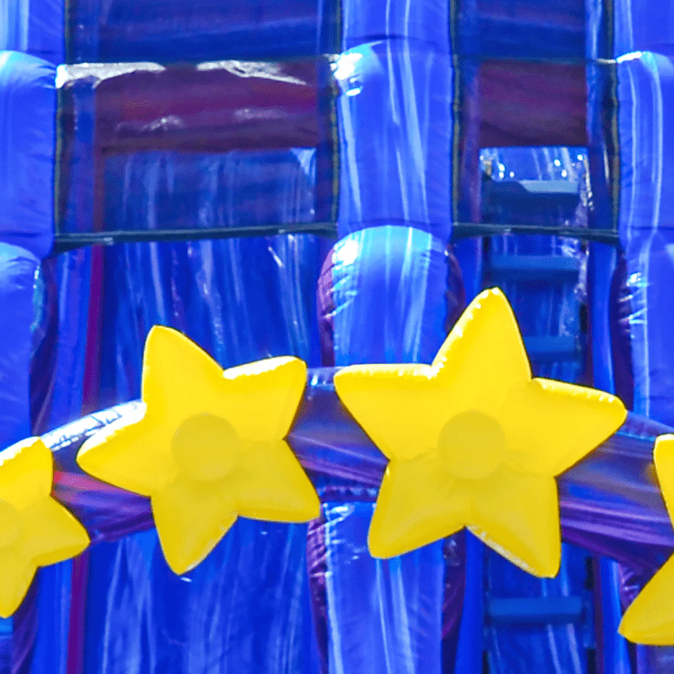 Imagine diving into a dazzling 21-foot water slide that lights up your party like the stars. With its thrilling slide and cool splash zones, this inflatable masterpiece turns any gathering into an unforgettable summer adventure.